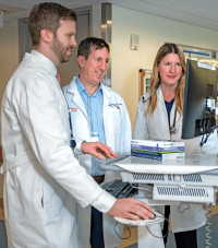 Jason Adelman, center, with Benjamin L. Ranard, deputy director of the Center for Patient Safety Science, left, and Maureen Kelly, director of quality and patient safety in the Department of Medicine