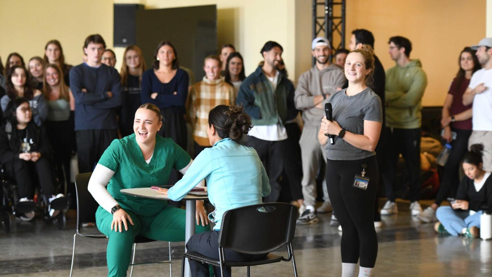 The DPT IIIs hosted the inaugural PT Olympics as a fundraiser for PT Prom, and it was a huge success with participation from all three classes and faculty. Prizes included a round of golf with Dr. Said, Swinglab analysis, a cookie shop tour in NYC with Dr. Said and friends, a framed autographed self-portrait of Dr. Said with gonimeters, RunLab analysis with Dr. Brough and team, a private reformer Pilates session, personal training session, and various gift cards. The even featured fun challenges like a Wheelchair Obstacle Course Relay, DF Wrap Assist/Crutch Race, Sit-to-Stand competition, Anatomy Game Show, and Single Leg Balance Marathon.