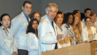Dr. Miller’s trip in 2004 was part of his work in championing humanism in medical practice and medical education. His teaching was recognized in multiple ways. He was a six-time recipient of VP&S teaching awards, recipient of the Columbia University Presidential Teaching Award, and a national finalist in the Association of American Medical Colleges prize for outstanding teacher. In 1998 he launched the student clinician’s ceremony that marks the transition for medical students from classroom teaching to clinical education in hospital and ambulatory settings, and the ceremony now bears his name.