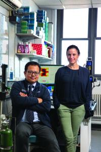 Dr. Konofagou has pioneered the use of focused ultrasound, a noninvasive technology, to open the blood-brain barrier temporarily and has worked with colleagues across campus to use the technology in treating Alzheimer’s, Parkinson’s, and brain cancer. “It sounded like an amazing tool to fight cancer,” says Dr. Wu. He asked Dr. Konofagou if she would teach him and explore whether the technology could be used to treat brain cancer. “It was the perfect match—the right timing, the interest—to work together,” he says.