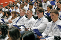 Students read their class oath, which states their values and affirms their commitment to medicine and duty to their patients and communities.